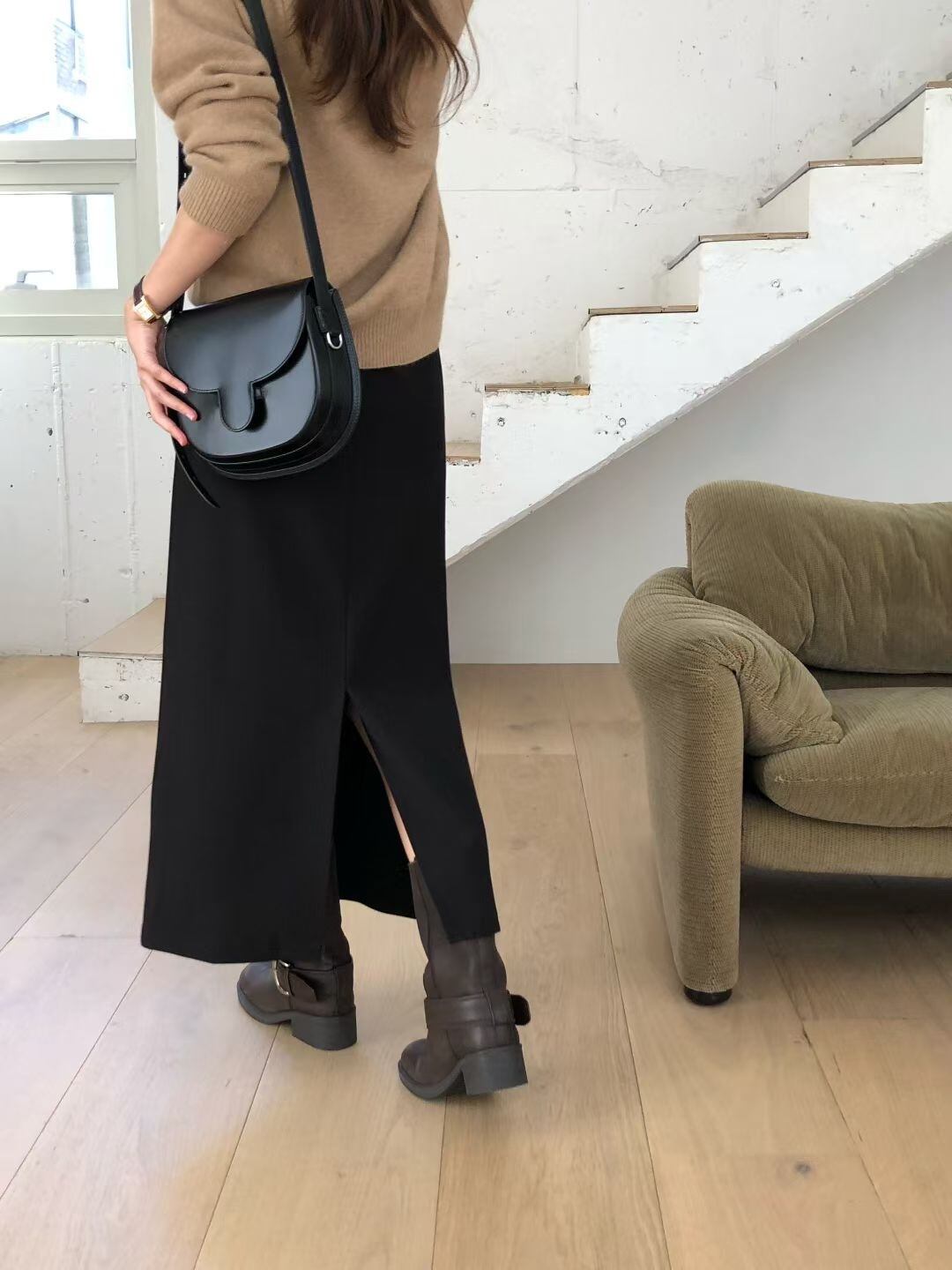[VERVEINE] ove string long skirt / 2color
