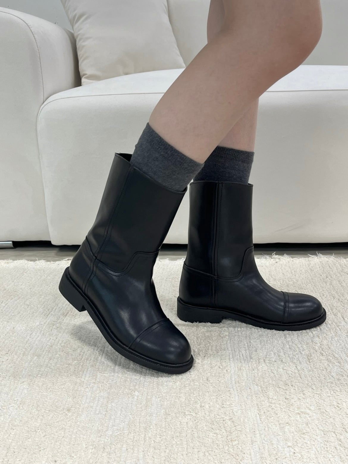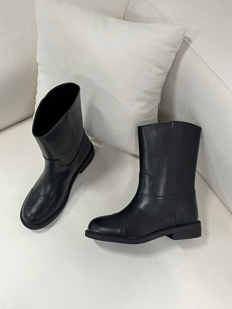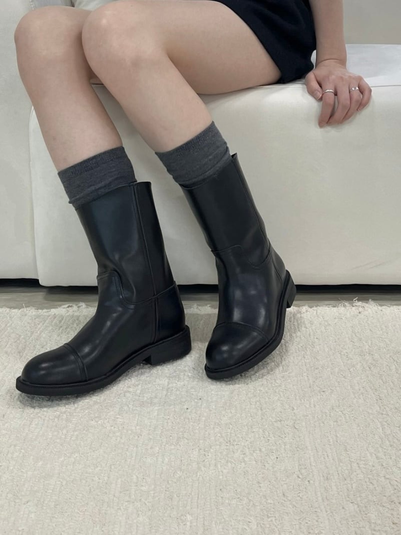 [MOMENT] bow round middle boots / 2color